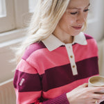 - Legende pink og rødt stribemønster med kontrastkrave